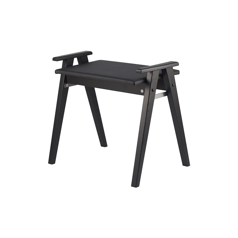 Alme pall i svartbetsad ek/ svart konstläder från Oscarssons Möbel. Alme är en svensktillverkad liten nätt pall. En fin detalj är handtagen på sidorna. En perfekt hallmöbel att sitta på när du knyter skorna!