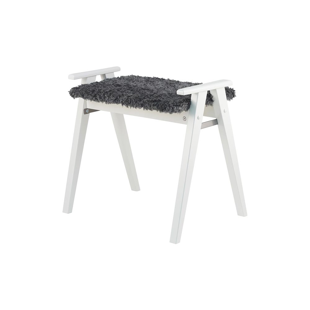 Alme pall i vitlack/ fårskinnslook mörkgrå från Oscarssons Möbel. Alme är en svensktillverkad liten nätt pall. En fin detalj är handtagen på sidorna. En perfekt hallmöbel att sitta på när du knyter skorna!