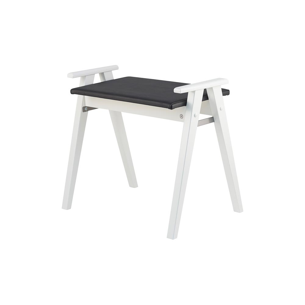 Alme pall i vitlack/ svart konstläder från Oscarssons Möbel. Alme är en svensktillverkad liten nätt pall. En fin detalj är handtagen på sidorna. En perfekt hallmöbel att sitta på när du knyter skorna!