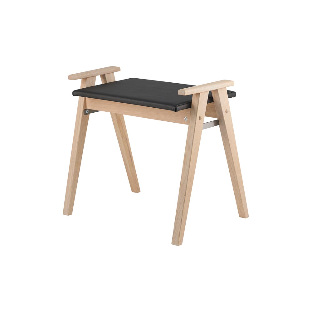 Alme pall i vitpigmenterad ek/ svart konstläder från Oscarssons Möbel. Alme är en svensktillverkad liten nätt pall. En fin detalj är handtagen på sidorna. En perfekt hallmöbel att sitta på när du knyter skorna!