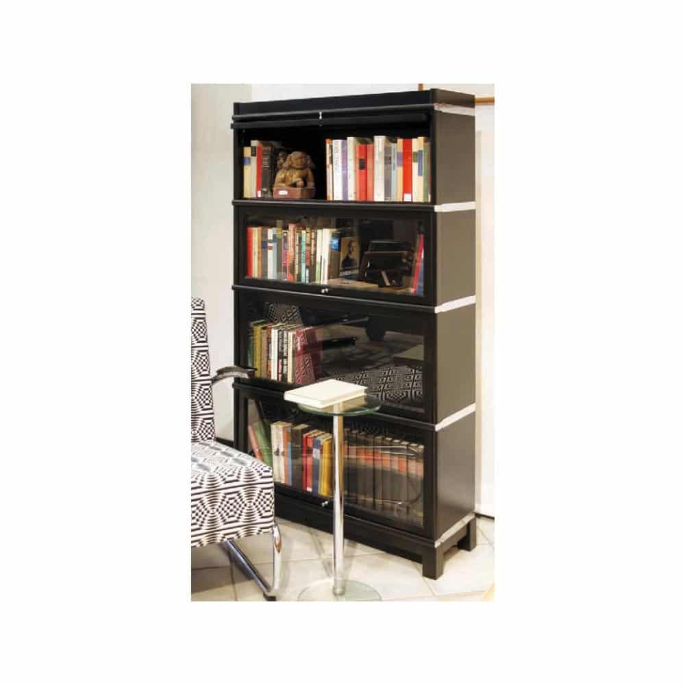 Dörrar i glas eller trä, som fälls upp och skjuts in när man ska öppna. Kassetterna finns i olika storlekar; pärmvitrin, högvitrin, lågvitrin, hörnvitrin. Inbyggd sekretär, bardel, lådor m.m.