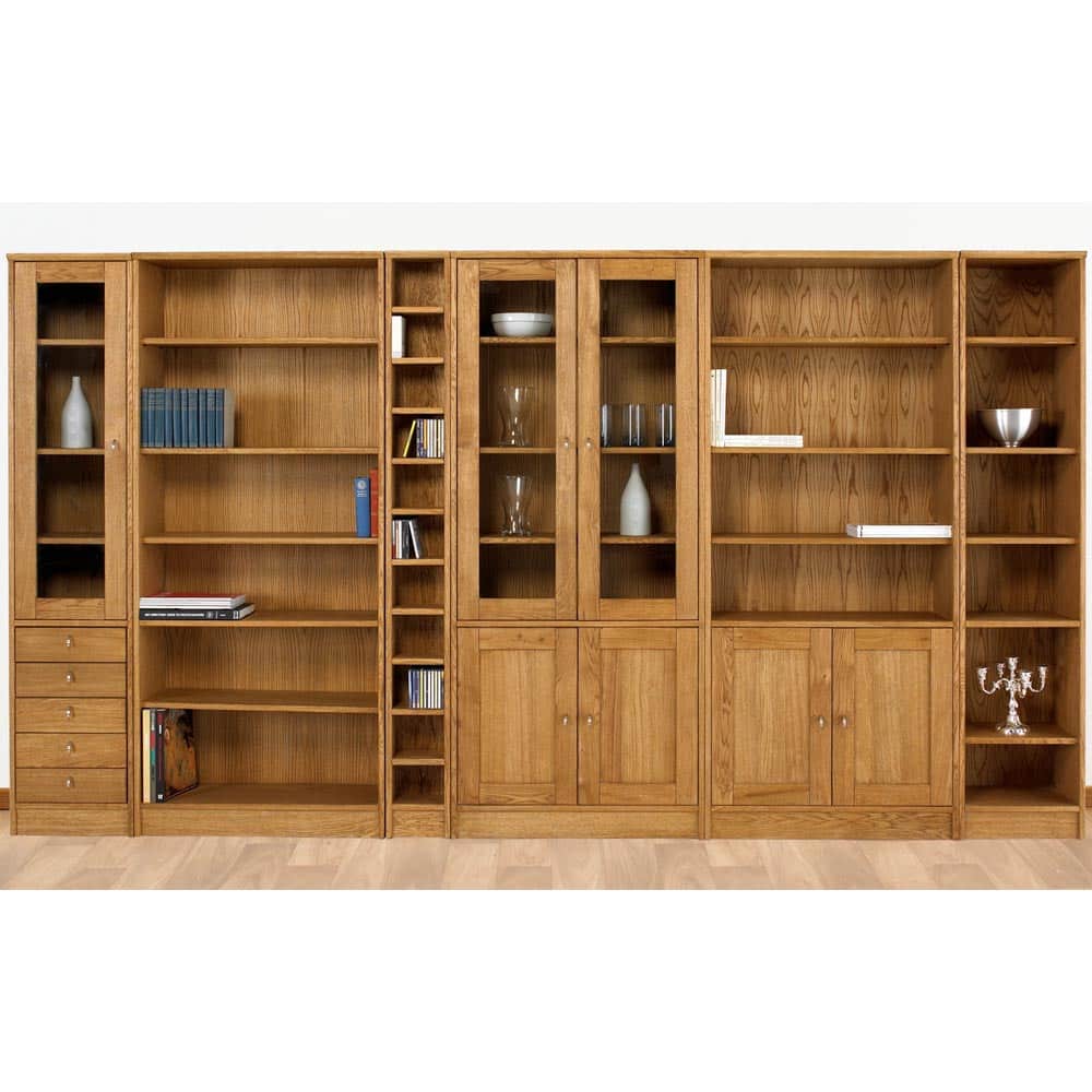 Ekliden sektionsbokhylla delarna framifrån vänster sett: E1 bredd 42cm 5.750:-, E8 bredd 80cm 5.790:-, E7 bredd 80cm 8.950:-, E9 bredd 80cm 7.850:-, E5 bredd 42cm 3.550:-.