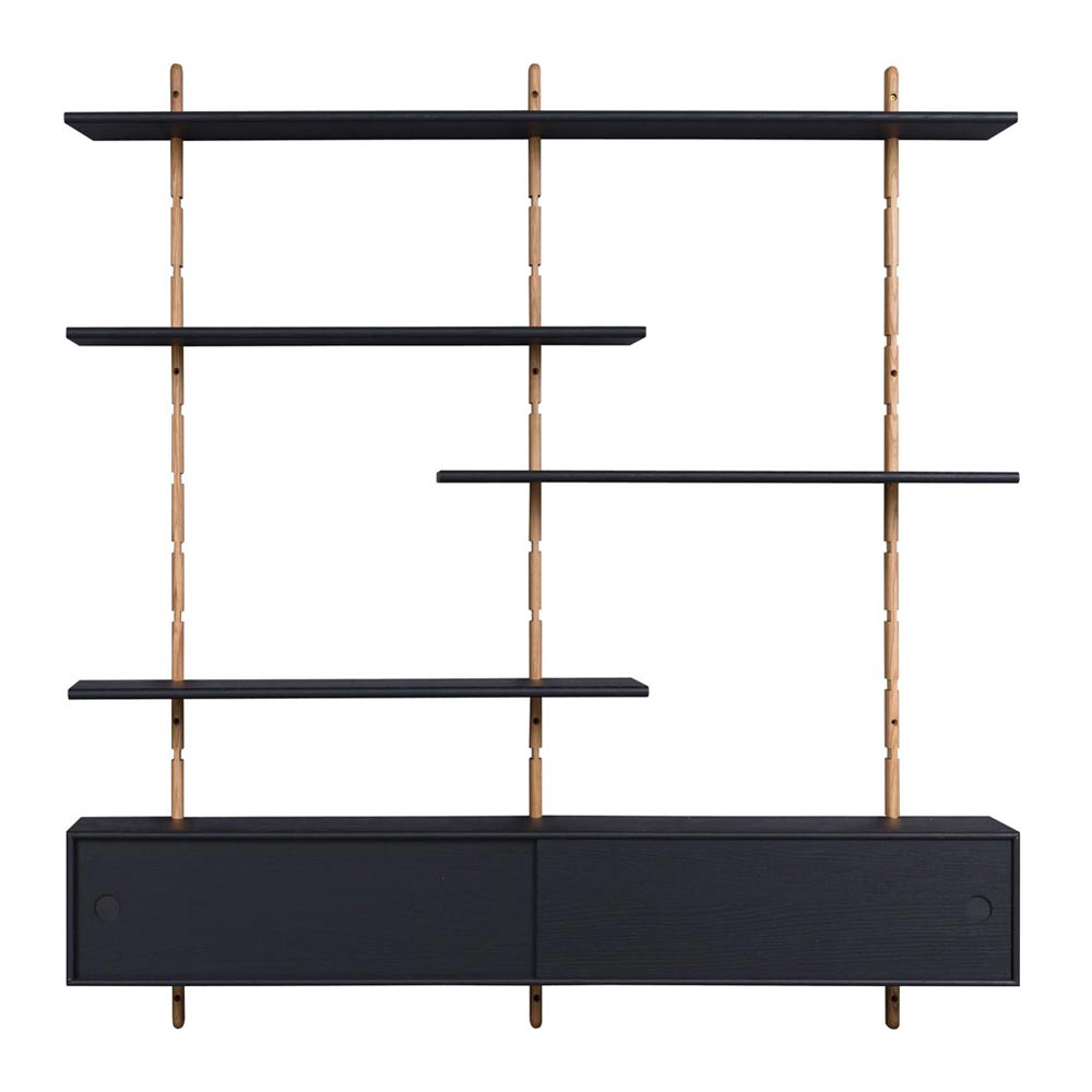 Moore hylla i snygg, retro design från danska PBJ. Moore vägghängd hylla ingår i ett byggbart förvaringssystem där hyllplan och skåp monteras på väggfästen vilket ger ett väldigt luftigt intryck. Väggfästen i oljad och hyllplan och skåp i svartbetsad ek. Levereras omonterad.