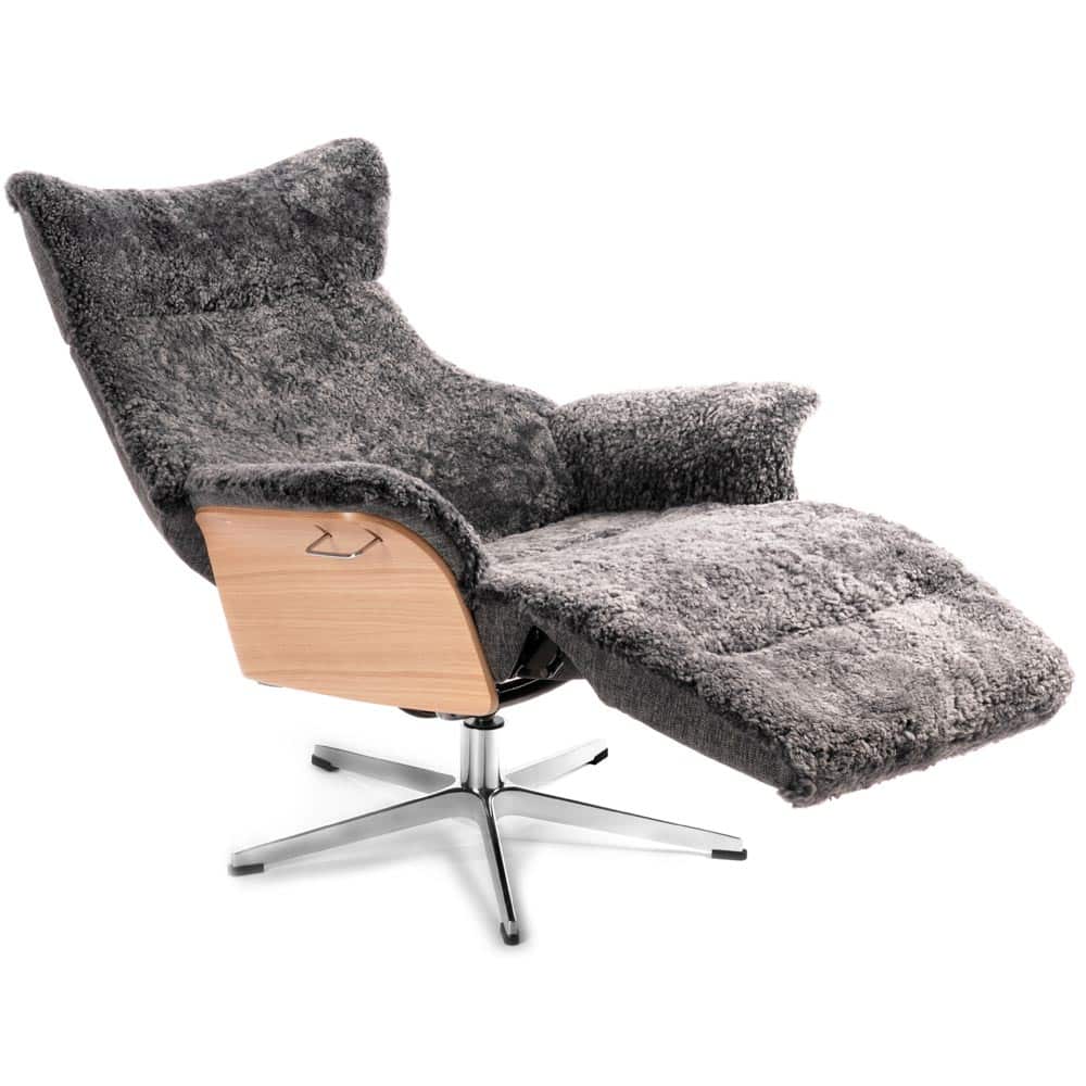 Armstödens utsida finns med följande trä: mattlackad ek, svartbetsad ek eller valnöt. Armstöden kan även fås klädda i tyg eller läder. Air fåtölj med fotstöd är en mycket skön fåtölj med härlig känsla och sittkomfort! Även praktiskt när man har begränsat med utrymme och det infällda fotstödet sparar plats i rummet.