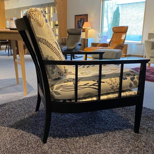 Ballerina fåtölj kan även beställas med stomme i oljad eller lackad massiv ek eller björk samt helt vitlackad björk. Välj mellan olika tyger och läder!