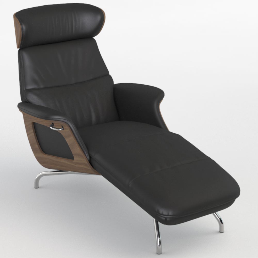 Clement chaiselong – läder savoy black/ valnöt/ krom