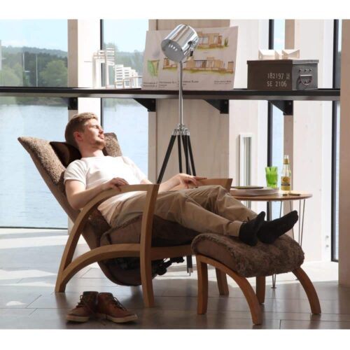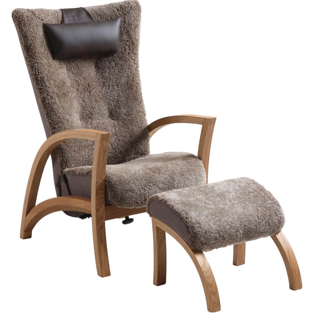 Focus fåtölj inkl. pall – fårskinn nougat/ ek