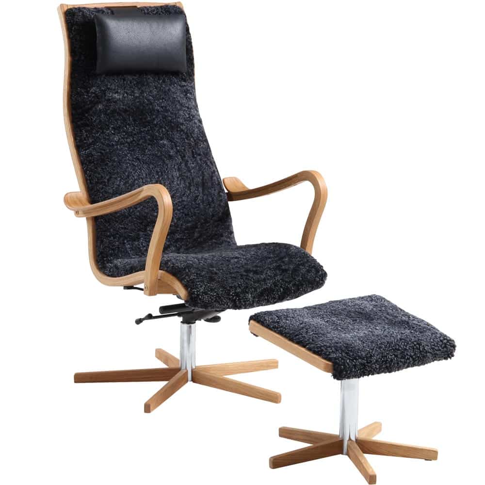 Furiren fåtölj inkl. pall – fårskinn koks/ ek