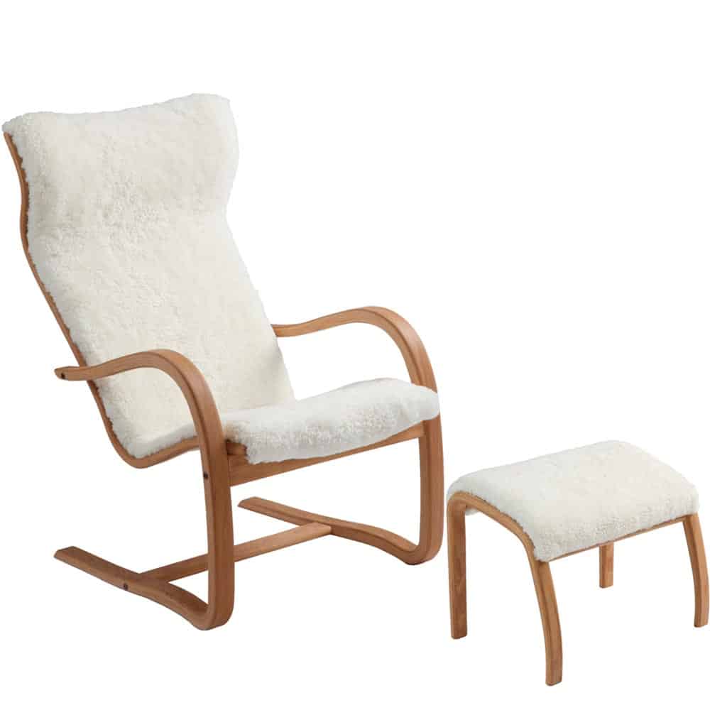 Gazell fåtölj har blivit en mycket populär möbel i många hem. Mycket av det beror på den sköna sittkomforten och den enkla och nätta designen. Trästommen är gjord i formpressat trä. Välj mellan oljad ek eller svartbetsad ek. Gazell fåtölj finns att köpa i 9 olika fårskinnsfärger: Graphite, Charcoal, Black, Espresso, Sahara, Sand, Offwhite, Raspberry och Viola. Gazell fåtölj svikt 9.775:-, Gazell fotpall 3.295:-.