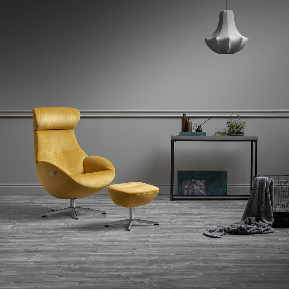 Globe fåtölj är utrustad med ställbar rygg och höj- och sänkbart nackstöd. Nackstödet är även vinkelbart i 3 olika lägen för bästa komfort! Underrede i formgjuten aluminium med snurråtergång (Return Memory), så att fåtöljen alltid stannar snyggt i samma läge! Globe fåtölj och pall finns att köpa i ett stort antal olika läder och tyg!