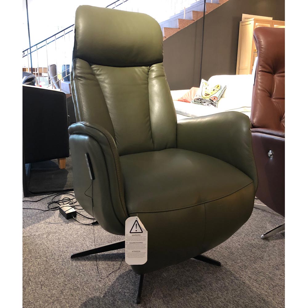 Lotus reclinerfåtölj från danska Hjort Knudsen klädd i ett mjukt semianilin och svart underrede. Fåtölj med inbyggt fotstöd, ställbar rygg och vippfunktion. Välj mellan manuell eller elektrisk funktion. Fåtöljen på bilden är klädd i läder 314 hunter.