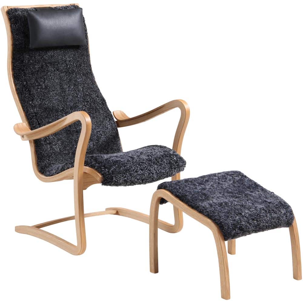 Majoren fåtölj inkl. pall – fårskinn koks/ ek