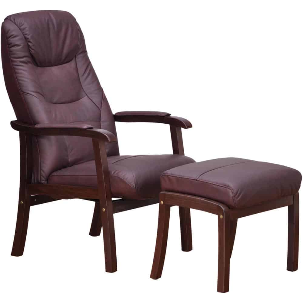 Otium fåtölj hög & pall – läder madras bordeaux 273/ mahogny
