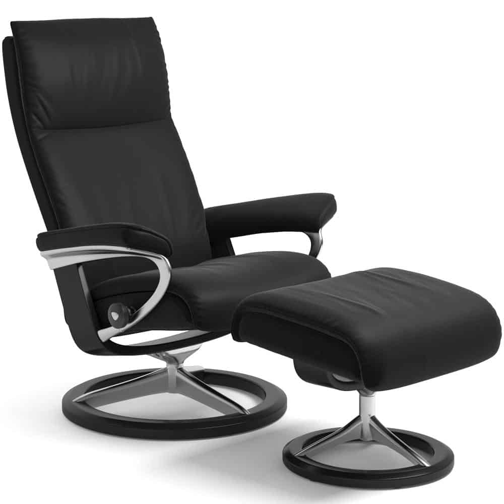 Stressless Aura fåtölj medium och fotpall från norska Ekornes. Underrede Signature Base/svartbets. Stressless – ”The Innovators of Comfort” är ett av världens kändaste varumärken på fåtöljer och soffor. Upplev Stressless fantastiska sittkomfort hos Nilssons i Lammhult!