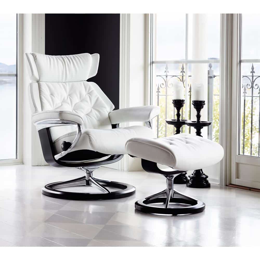 Stressless Skyline M fåtölj och fotpall från norska Ekornes. Underrede Signature Base/svartbets. Stressless – ”The Innovators of Comfort” är ett av världens kändaste varumärken på fåtöljer och soffor. Upplev Stressless fantastiska sittkomfort hos Nilssons i Lammhult!