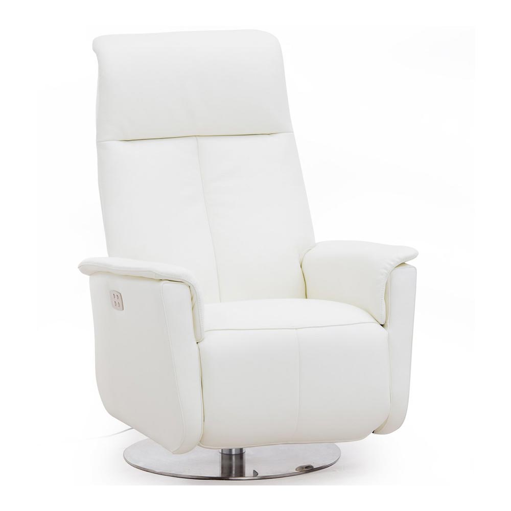 Vettel reclinerfåtölj M – läder semi white/ borstad
