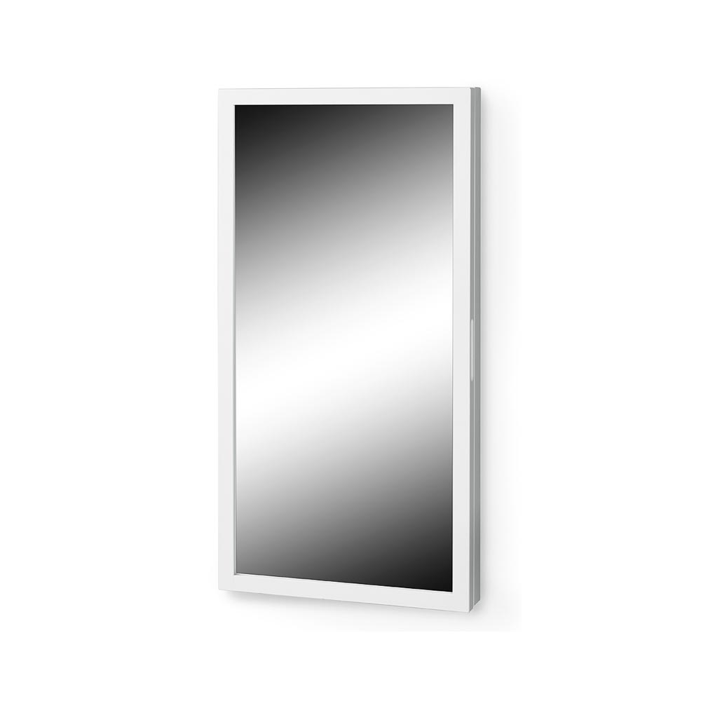 Bakom spegeln finns bra förvaring till nycklar med massor av krokar!