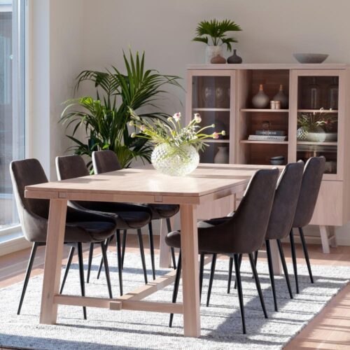 Brooklyn matbord ingår i en produktserie och finns även i mörk ek, s.k. smoked eller lackad ek. Komplettera matbordet med tilläggsskivor á 50cm 1.495:-/st. Bordet finns även i mindre storlek, 170*95cm.
