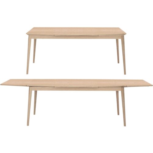 Curve matbord i fanerad /massiv vitpigmenterad mattlackad ek från danska PBJ. Ett stilrent matbord med en något svängd bordsskiva som förlängs med s.k. Holländskt utdrag, där en tilläggsskiva kan dras ut i varje kortsida. Dessa skivor ligger under den vanliga bordsskivan. Curve matbord är designat av Morten Svendsen och Michael H. Nielsen.