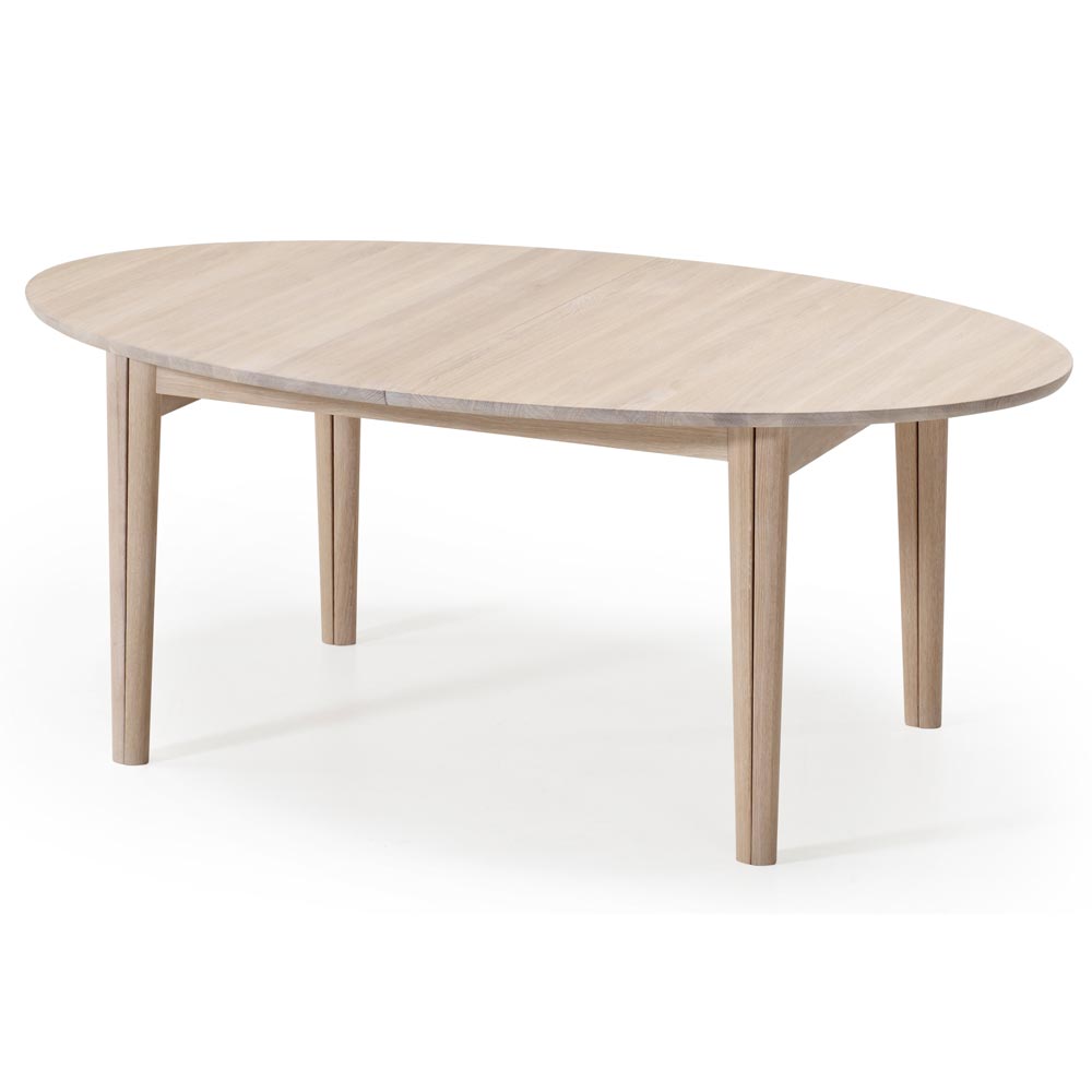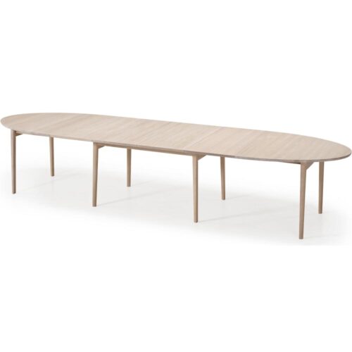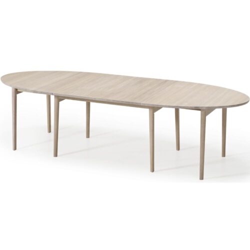 SM78 matbord har en mycket praktisk och patenterad utdragsfunktion. När man delar bordet delar även bordsbenen på sig. Detta ger en bra stabilitet då det blir totalt 8 ben som bär bordet! Till SM78 ingår 2st iläggsskivor á 50cm i ”massiv look”. Totalt finns det plats för 4 iläggsskivor. Köp till 2 extra iläggsskivor 3.799:-. Totallängd med 4 iläggsskivor blir 390cm. Finns även i andra träslag och ytbehandlingar!