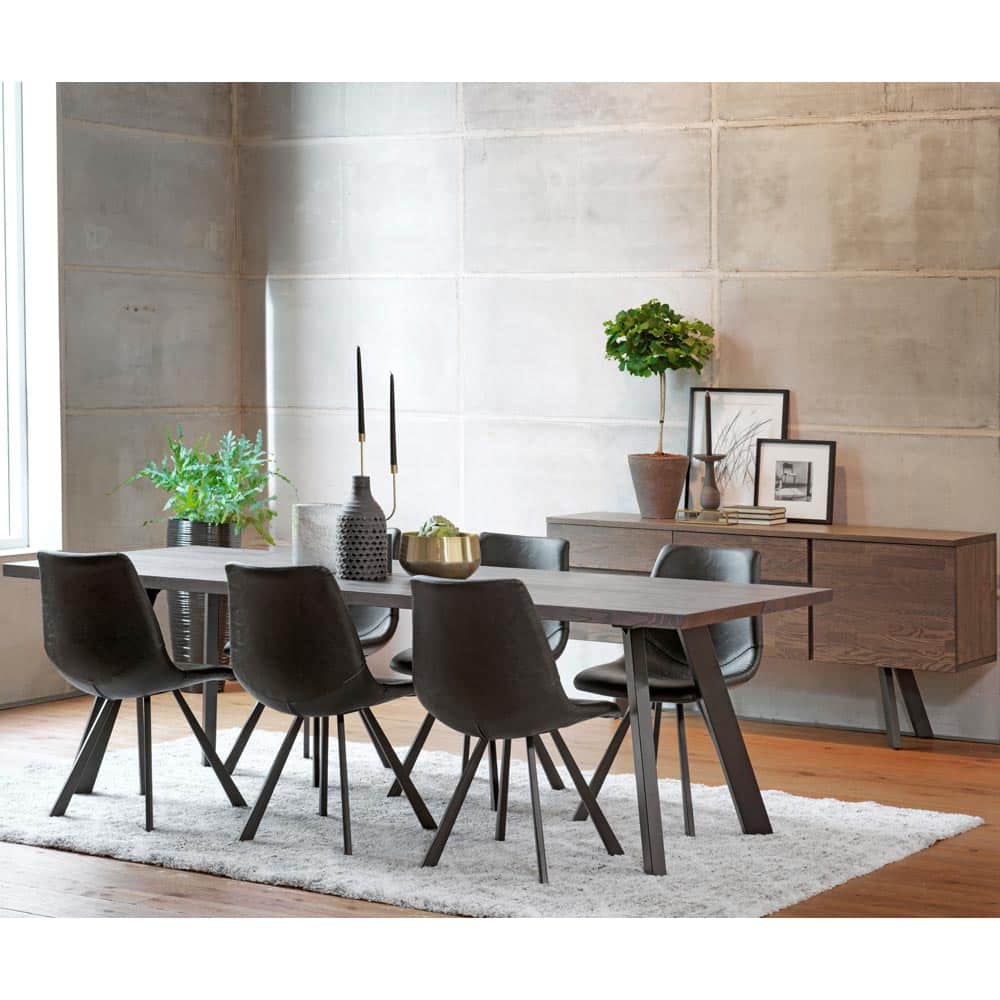 Bordskivan på Fred matbord är fasad inåt på kortsidan och utåt på långsidan – en snygg detalj! Benen kan monteras på 2 olika ställen.