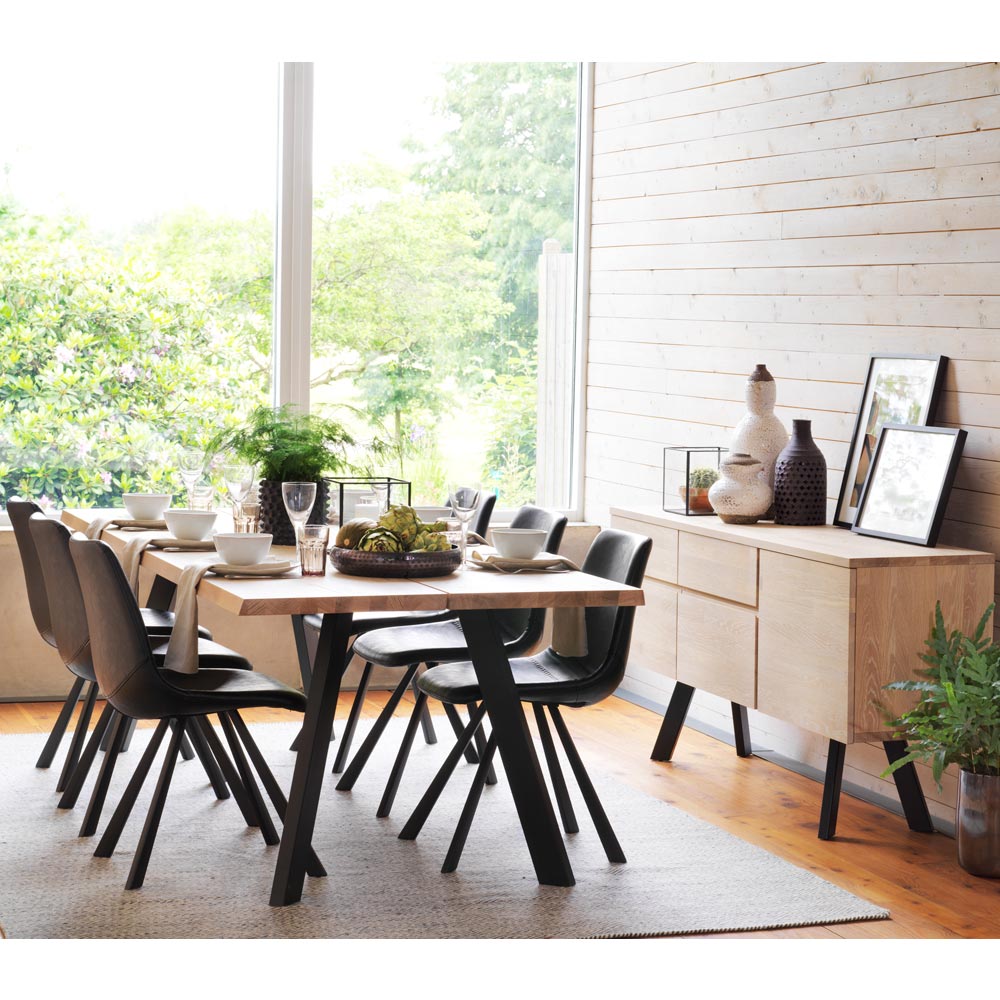 Bordskivan på Fred matbord är fasad inåt på kortsidan och utåt på långsidan – en snygg detalj! Benen kan monteras på 2 olika ställen.