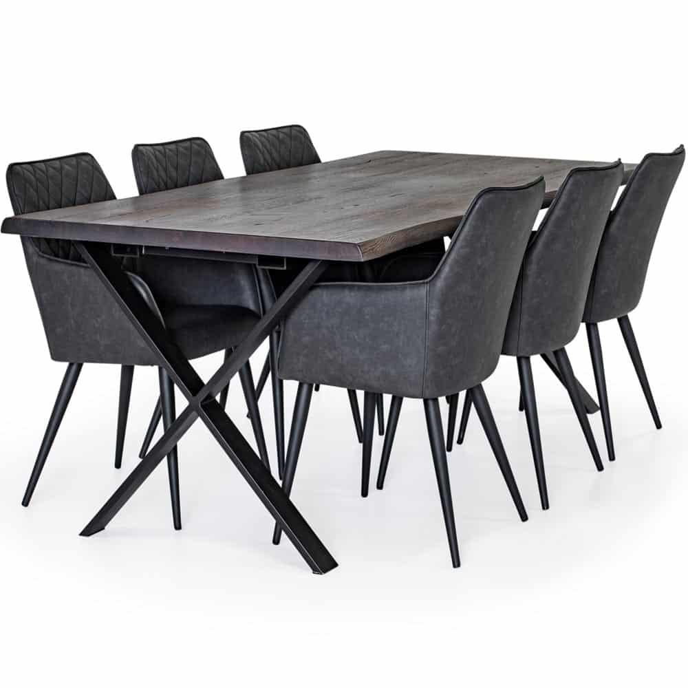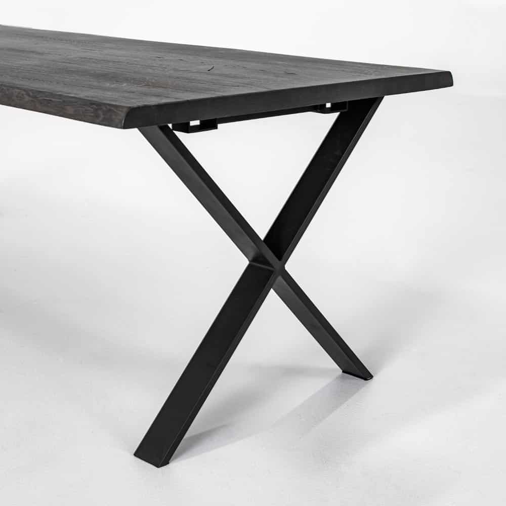 Exxet matbord kan kompletteras med två stycken tilläggsskivor á 50cm, 2.050:-/styck. Utförandet på benen i svart metall väljs mellan X-ben, rakt eller snedställt. Exxet matbord finns även i oljad ek.