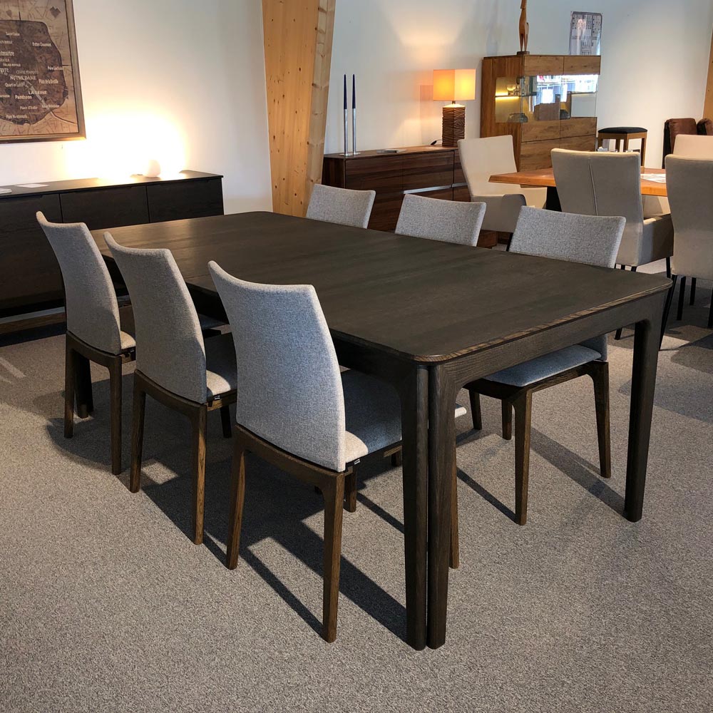 SM27 matbord är ett matbord för dig som vill duka upp för det stora sällskapet! 3st iläggsskivor i ”massiv look” ingår. Köp till 3st extra ilägg för 5.399:- (ordinarie pris 5.279:-), så kan bordet nyttjas i sin maxlängd! Bordet ihopfällt är 101x205cm. När man sedan drar isär bordet delas bordsbenen. En mycket smart lösning som gör att ett bord med en totallängd på 511cm blir mycket stabilt, då med totalt 8 stycken bordsben!