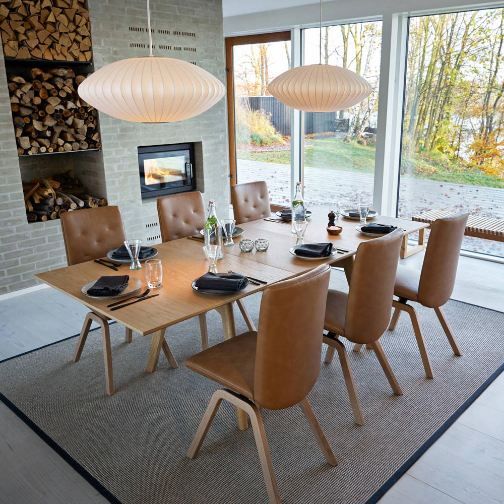 Stressless Dining omfattar 3st matbord, Toscana med svagt svängd bordsskiva, Madeira med rektangulär bordsskiva och senast Bordeaux i smäcker design.. Välj mellan 2 olika förlängningsalternativ på bordet; vanligt ilägg (1st eller 2st á 50cm) eller PopUp skiva 80cm som fälls upp i mitten. Välj mellan 2st olika ben; T100 som är ett nättare ben i massivt trä eller T200 som är ett lite robustare ben i fanér. Finns i lackad ek (fanér & massivt), lackad whitewash ek (fanér & massivt) samt lackad valnöt (fanér och bets).