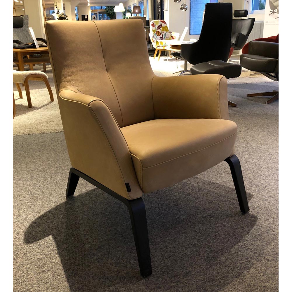 Mia fåtölj från småländska Conform i läder Grizzly. Designad av Niels Gammelgaard. Mia är en mycket bekväm och nätt liten fåtölj. Snygga trämedar i svartbetsad ek!