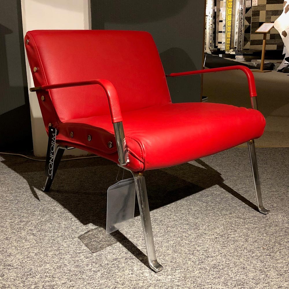 Orion fåtölj med armstöd från småländska Conform. Designad av Lenka Teilmann. Orion fåtölj har en kaxig och läcker design med snygga kromknappar på sidan som klädseln är trädd över. Stomme i formgjuten aluminium.