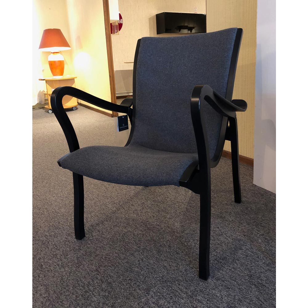 Pigan fåtölj från Småländska Bröderna Anderssons i svartbetsad björk och tyg Facett. Smäcker och elegant design med en skön följsam sittkomfort.