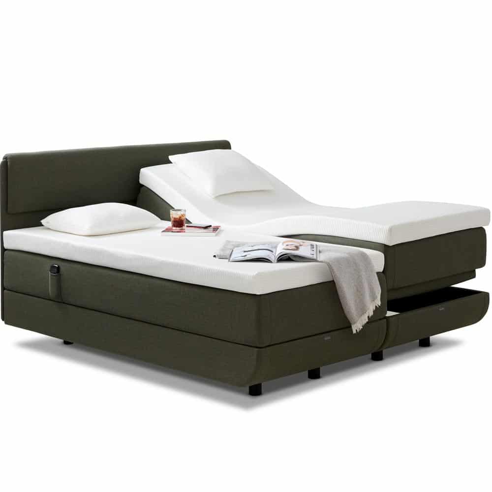 Inklusive 9 cm bäddmadrass. Överdraget kan tvättas. Flexibla lameller för minimalt slitage och optimal komfort. Finns med 3 olika bäddmadrasser: Original – avser sängen ovan (fast), Cloud (mjuk) eller Sensation (lätt att röra sig). Sängram av solid kärnträ. Finns i tre färger: skogsgrön, mörkgrå och ljusgrå. 10 års garanti på bäddmadrass, madrass, sängbotten. 5 år på motor och 3 år på fjärrkontroll.