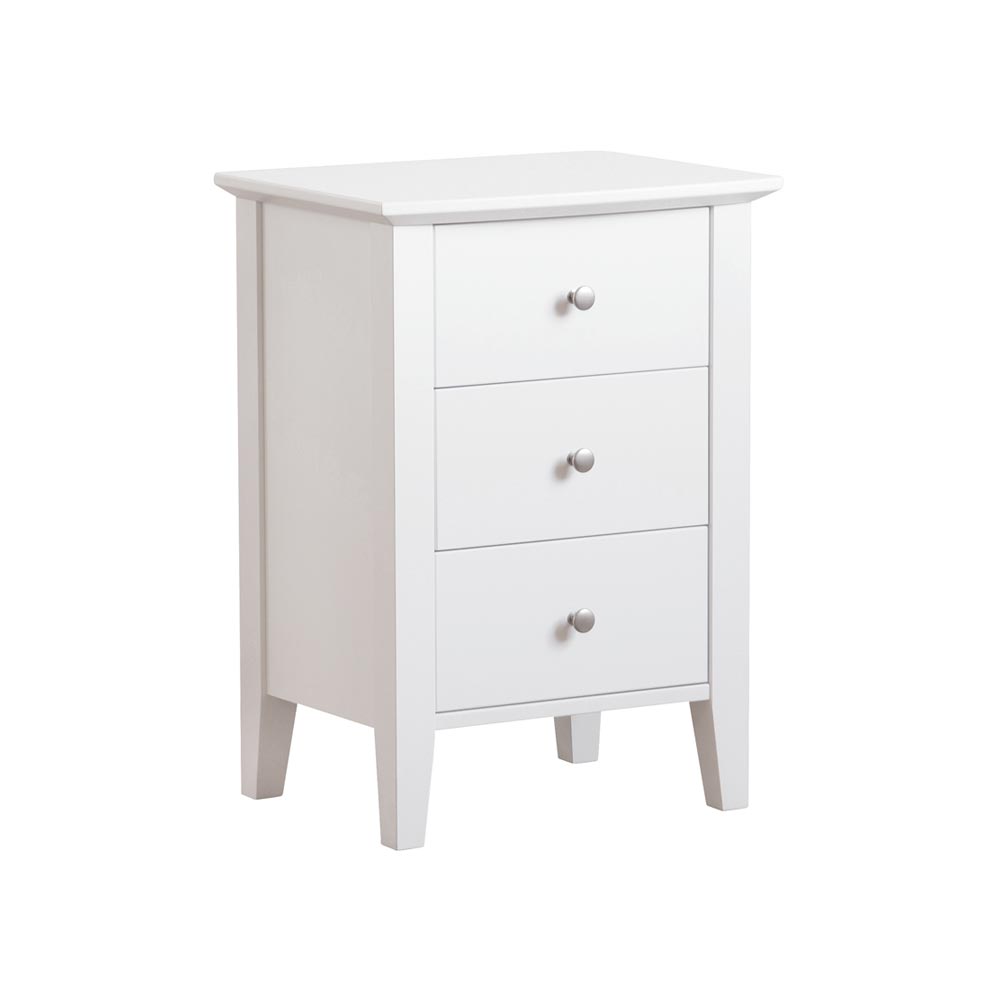 Eka sängbord 3 lådor i vitlack från Newline. Elegant design med toppskivan som är svagt svängd i framkanten. Levereras omonterat.