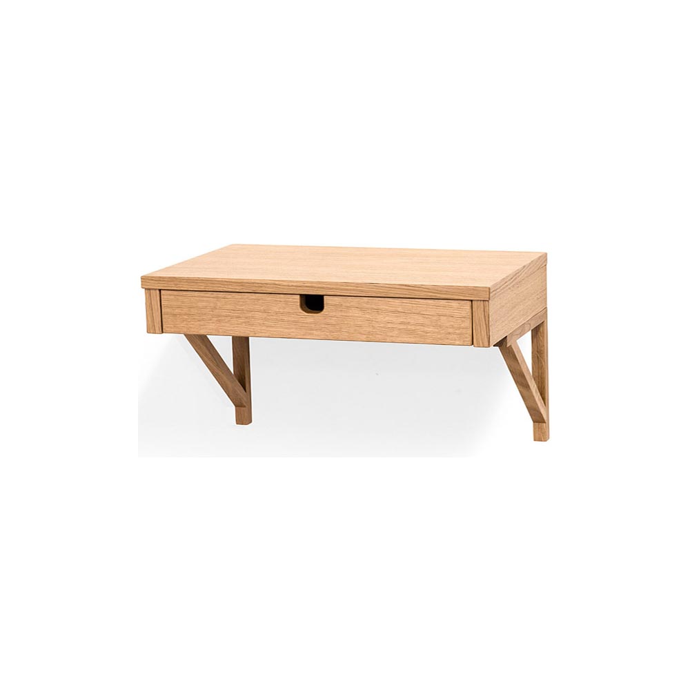 Klinte vägghängt sängbord i lackad ek med låda för förvaring. Snyggt och stilrent från Torkelsson. Passar lika bra till förvaring och avlastning i hallen som bredvid sängen.
