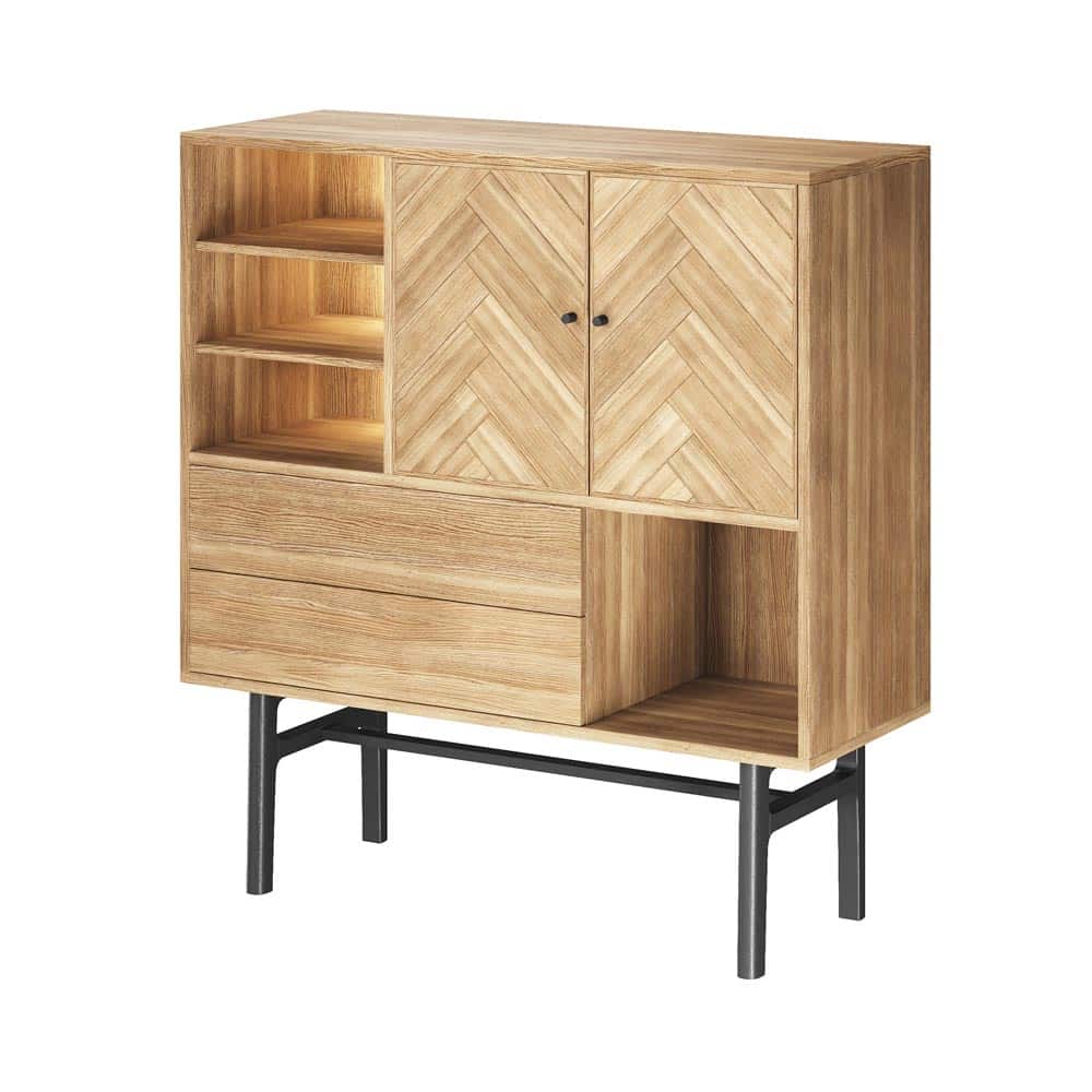 Casö 230 highboard i oljad ek/ underrede i svartlack från danska Casö. Köp skåpet med eller utan LED-belysning. Välj mellan två olika fronter på dörrarna.