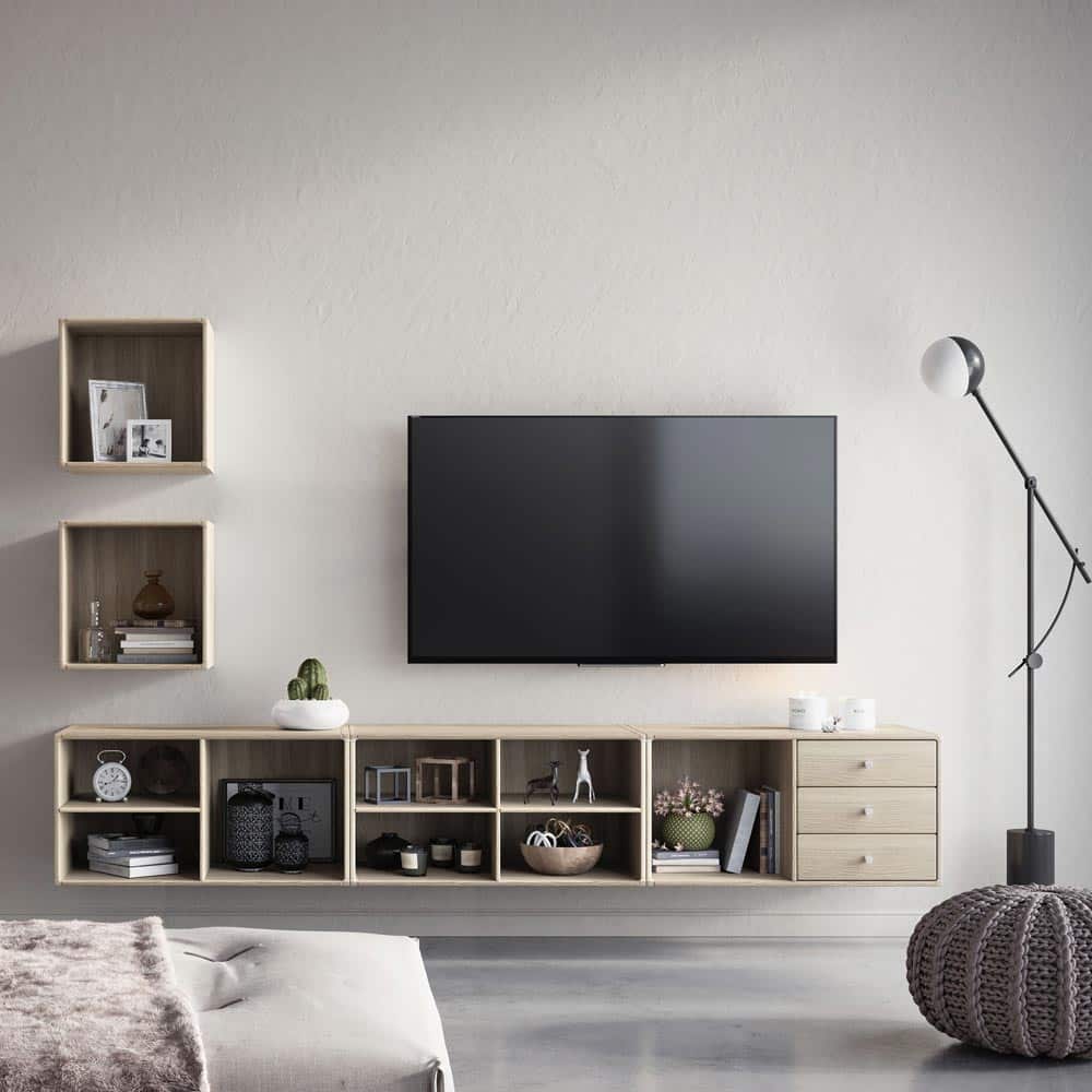 Rimme förvaring är en byggbar serie med många olika val. Välj mellan öppen eller dold förvaring, vägghängda moduler eller med ben. Förvaringen kan köpas i naturoljad, vitoljad eller rökt ek.