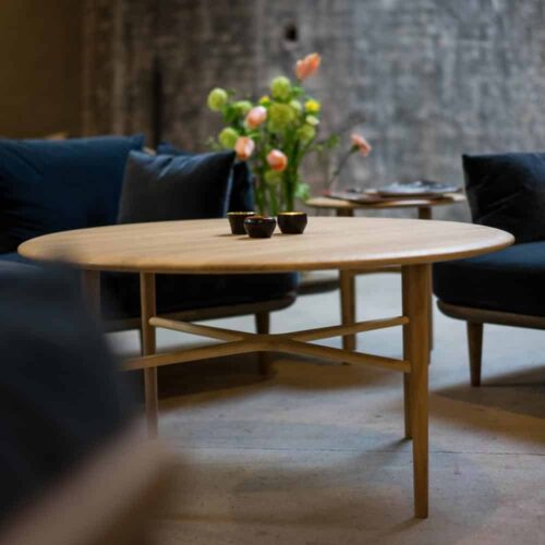 Crest soffbord finns också ovalt, 150x50cm och som sidobord.