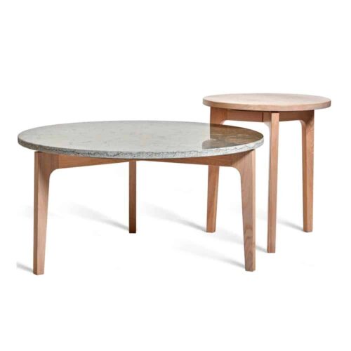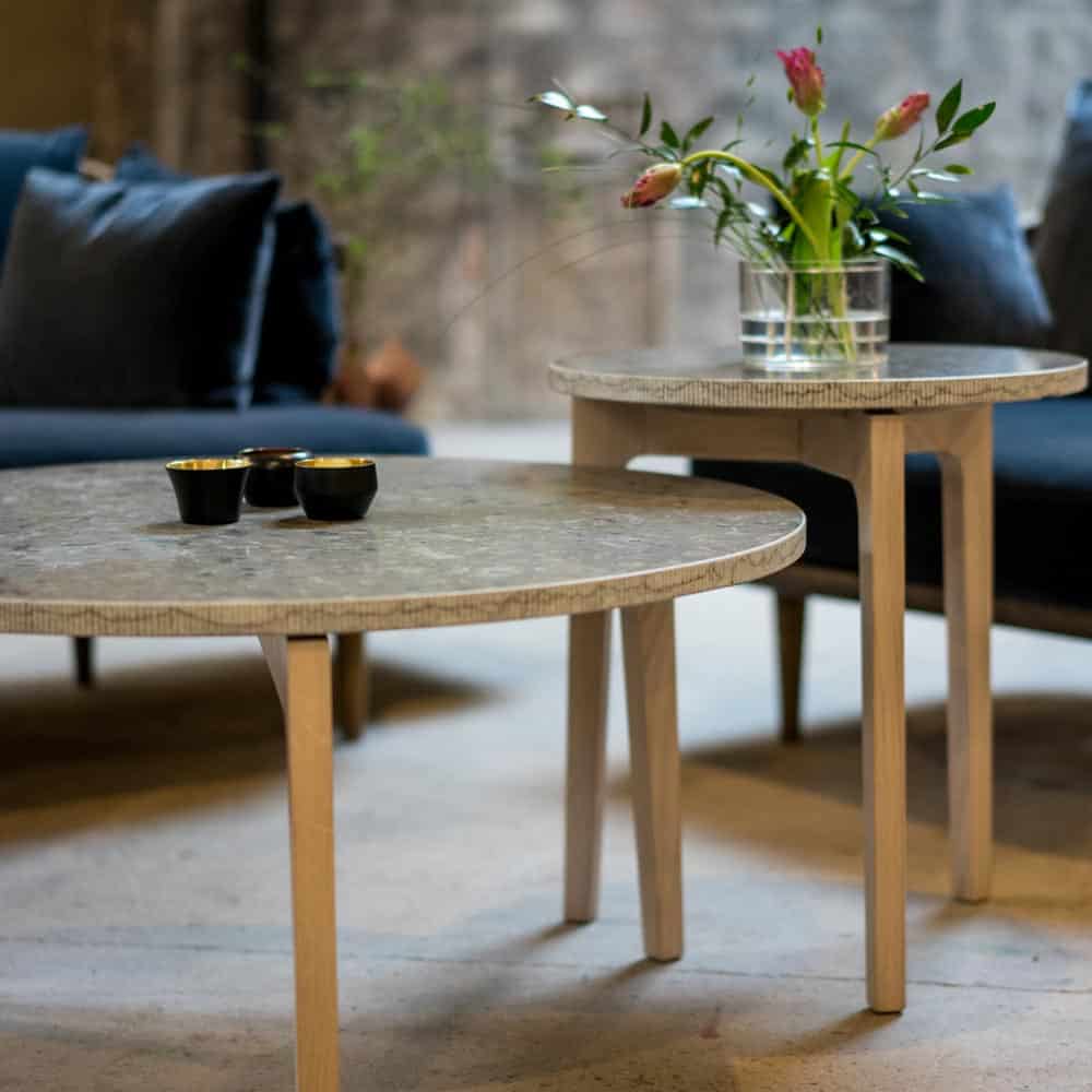 Höllviken soffbord med ben i vitpigmenterad ek och kalkstenstopp. Ett elegant och snyggt soffbord som passar bra in i det moderna hemmet. Stram och skandinaviskt, men ändå varm och omtänksam design från småländska Mavis. Finns både som soffbord och sidobord.