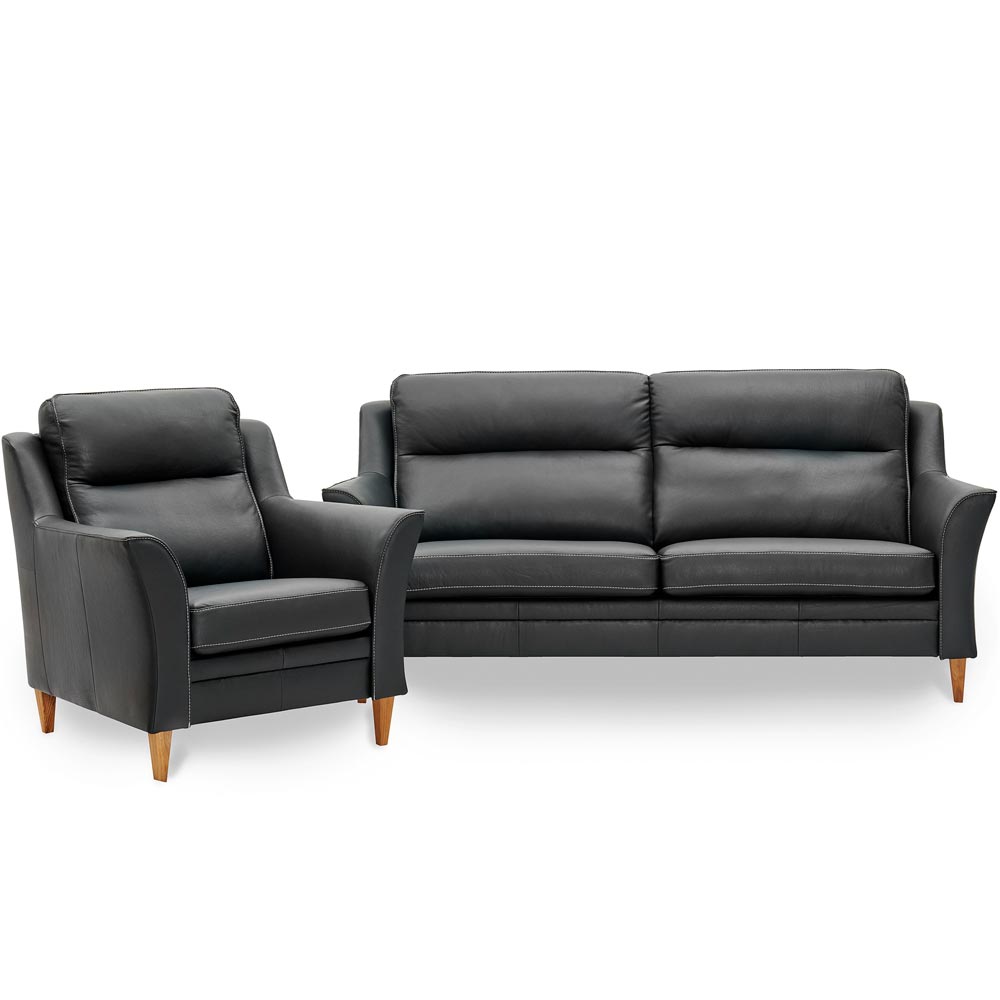 Prisexempel i läder Major: Casino 3-sits soffa 199cm 19.970:-, 2,5-sits soffa 184cm 18.365:-, 2-sits soffa 144cm 15.890:-, fåtölj 89cm 10.835:-.