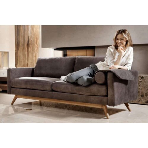 Clint soffa 3-sits Maxi med en stilren design från finska BD Möbel. Clint soffa klädd i Tribelädret/ mattlackade ekben ger en snygg Vintagekänsla! Soffan på bilden visas i färg 31 mörkbrun.