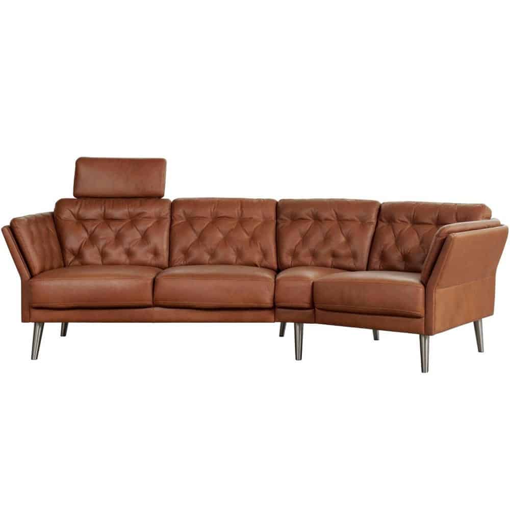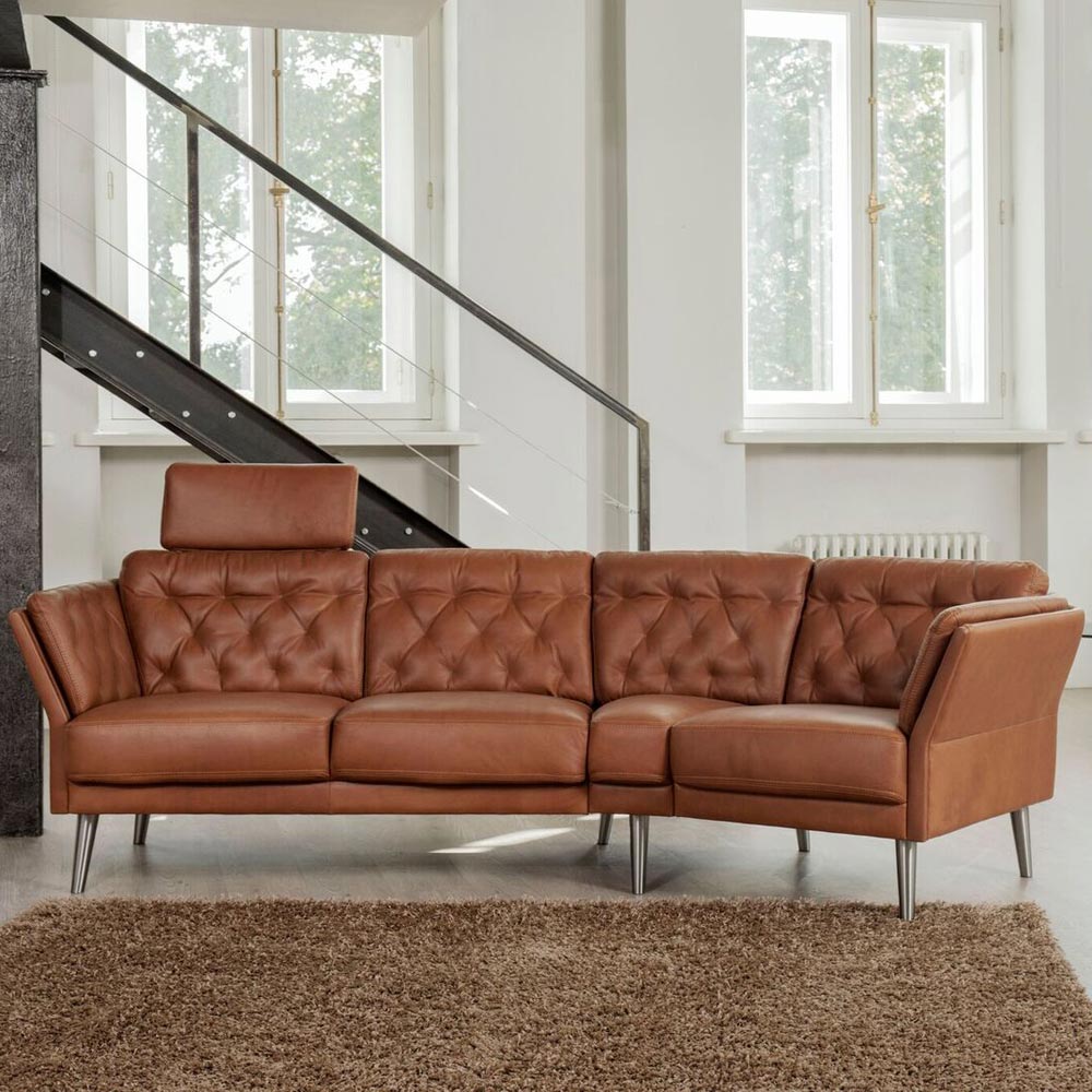 Soffan går även att köpa spegelvänd eller som vanlig 3-sits, 2-sits och fåtölj m.m. Välj mellan olika läder, tyg samt synliga trädetaljer på armstöden.