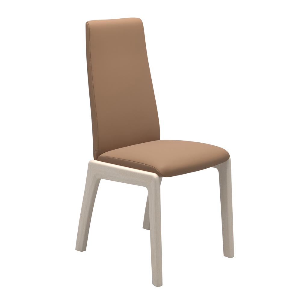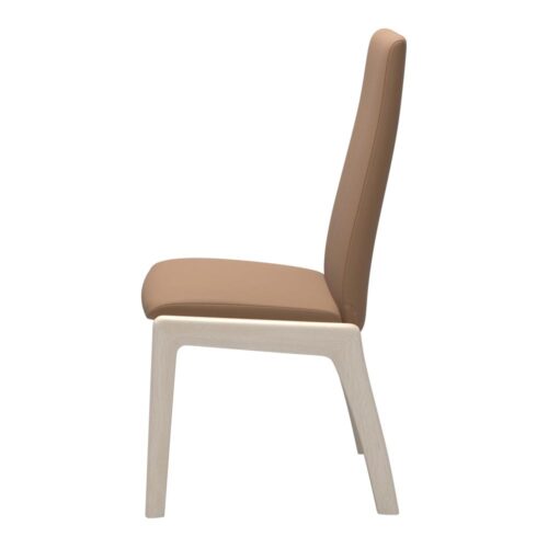 Laurel stol med hög rygg i läder Batick latte/ underrede D100 whitewash från norska Ekornes.