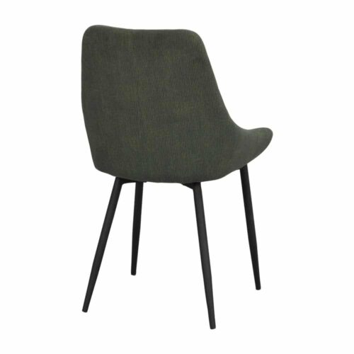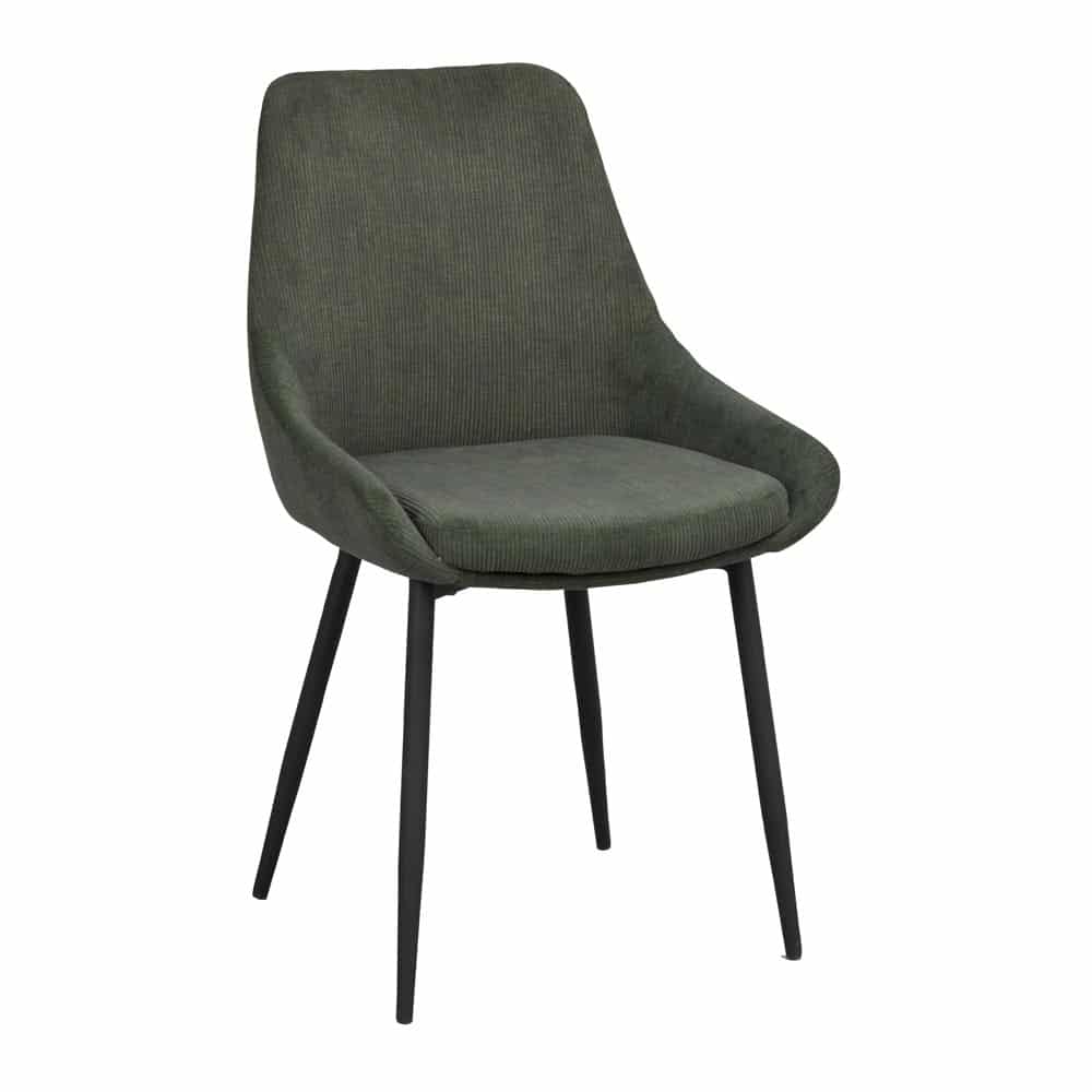 Sierra stol i modern design från Rowico. Stolen är klädd i ett grönt manchestertyg och ben i svart pulverlackad metall. Stolens stoppade sits i kupad form gör den fantastisk skön att sitta i.