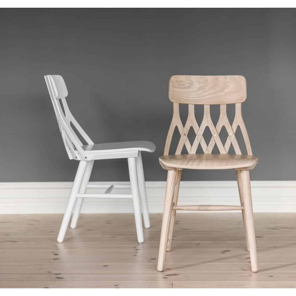 Y5 stol finns i Blond ask, oljad ek, vitlack och svartbets.