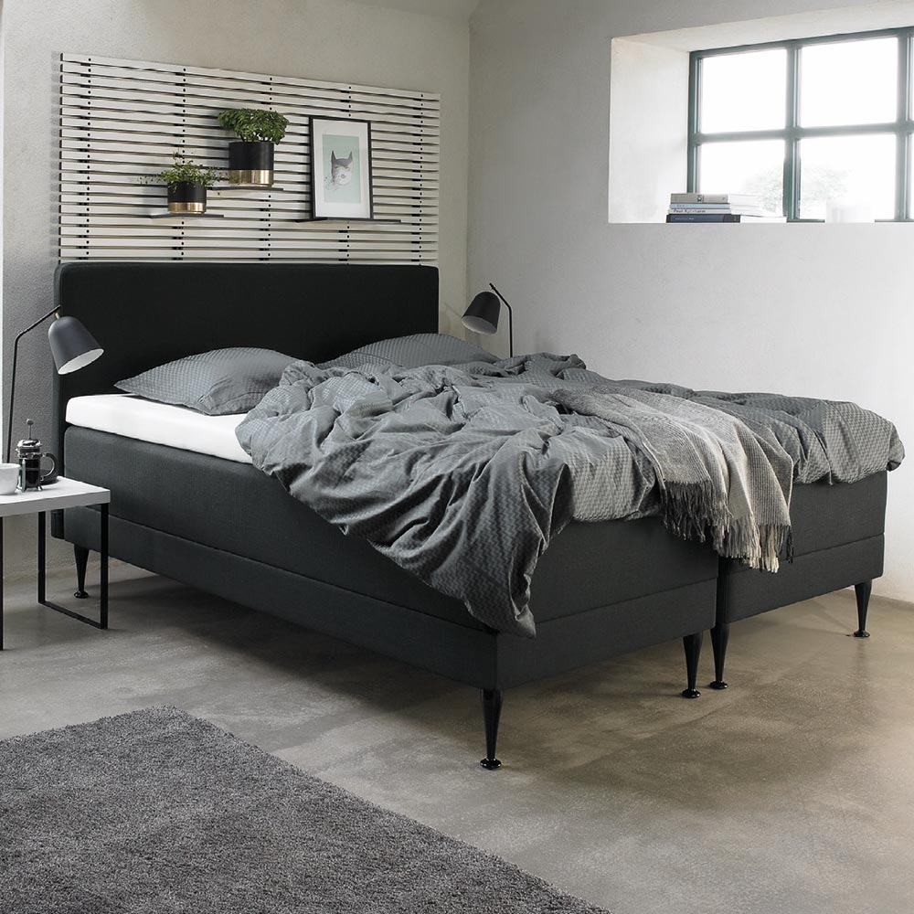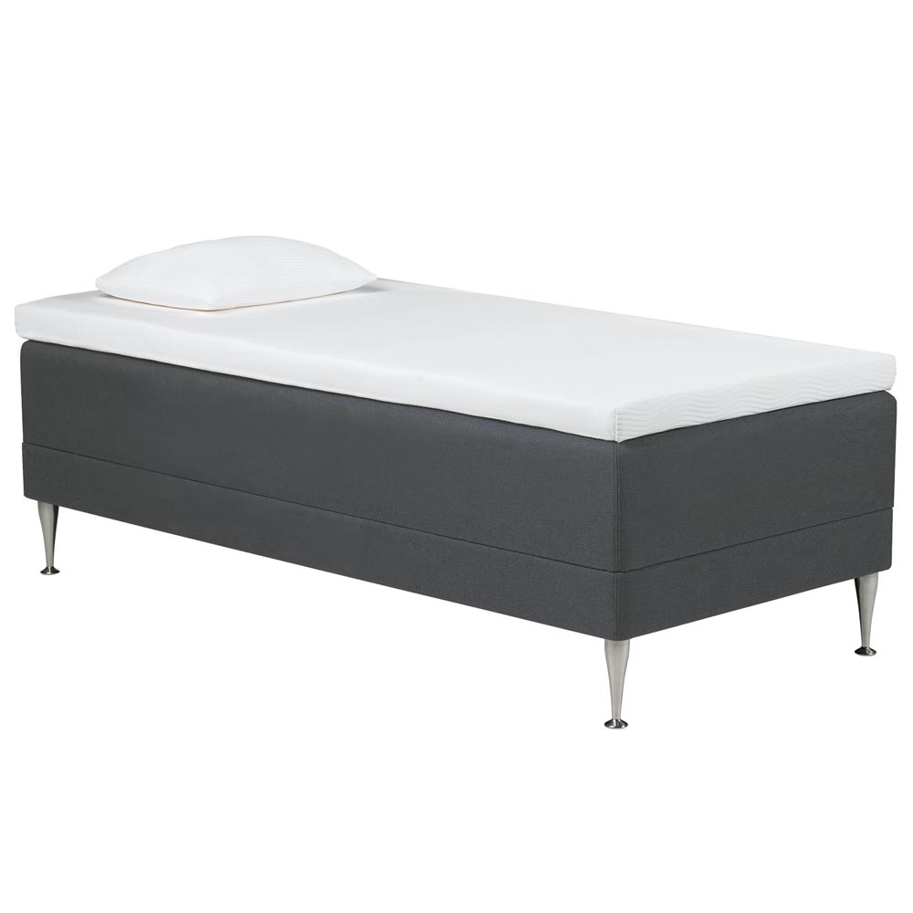 Inklusive 7 cm bäddmadrass. Överdraget kan tvättas i 60 grader. Flexibla lameller för minimalt slitage och optimal komfort. Finns med 3 olika bäddmadrasser: Original – avser sängen ovan (fast), Sensation (lätt att röra sig) och Cloud (mjuk). Sängram av solid kärnträ.Finns i sju färger: ljusgrå, grafit, onyx, havsblå, aubergine, choklad och kakao. 10 års garanti på bäddmadrass, madrass, sängbotten.