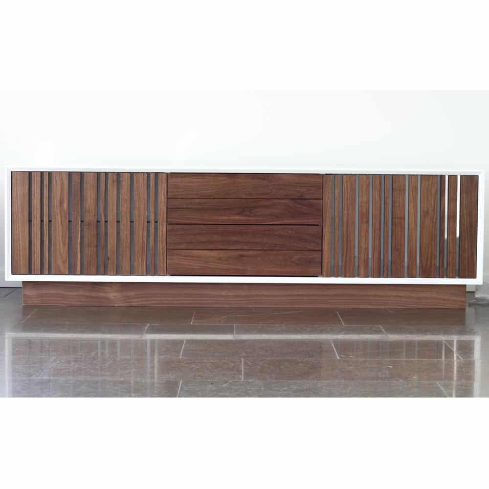 Line 54 TV-bänk, 2 lådor: oljad valnöt/ vitlack 17.495:-, oljad ek/ vitlack 16.495:-, vitoljad ek/ vitlack 16.495:-, vitlack/ vitlack 14.495:-.