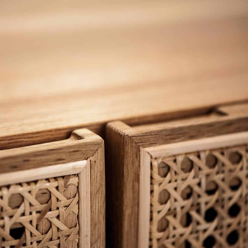 Racquet TV-bänk ingår i en produktserie. Finns även i blond ek.