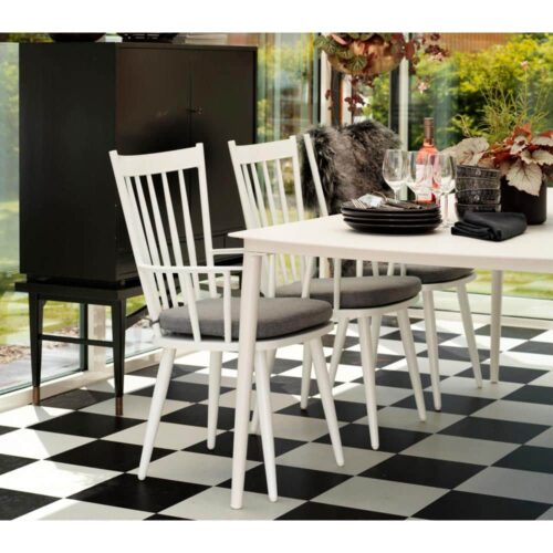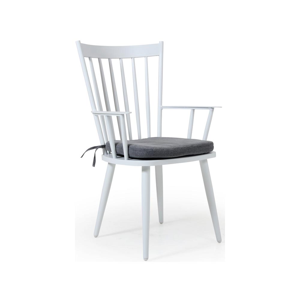 Alvena karmstol finns i olika färger. En väderbeständig stol som passar snyggt till Grandby matbord!