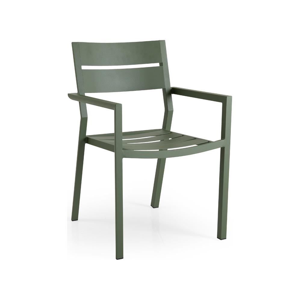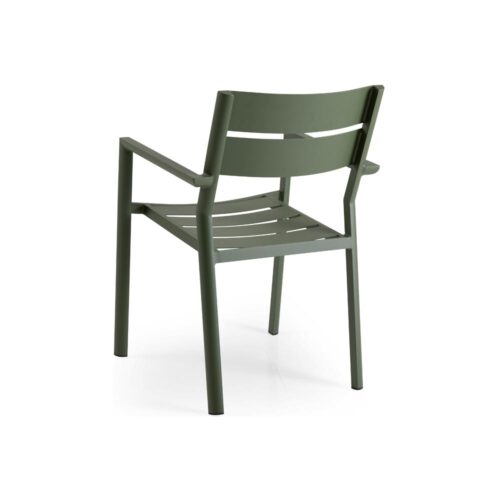 Delia karmstol i grön mattlackad aluminium. En praktisk stapelstol från Brafab.